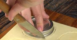 • Préchauffez le four à 180°C (Thermostat 6 - 350°F). Déroulez la première pâte brisée et découpez-la avec un couteau en suivant le couvercle d’un gros bocal. Si le couvercle est en métal, vous pouvez l’utiliser comme moule pour faire cuire vos pâtes au four (mais vous devez les garnir avant de les mettre à cuire).