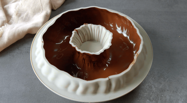 - Faites fondre le chocolat au bain-marie et étalez-le uniformément à l'intérieur du moule en silicone. Laissez le chocolat prendre. Le mieux est de mettre le tout au frigo.