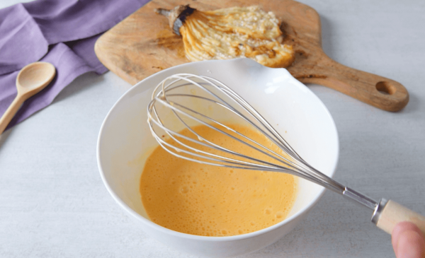 - Dans un saladier, mettez les œufs, la Maïzena, le sel, le poivre et l'eau et mélangez le tout.