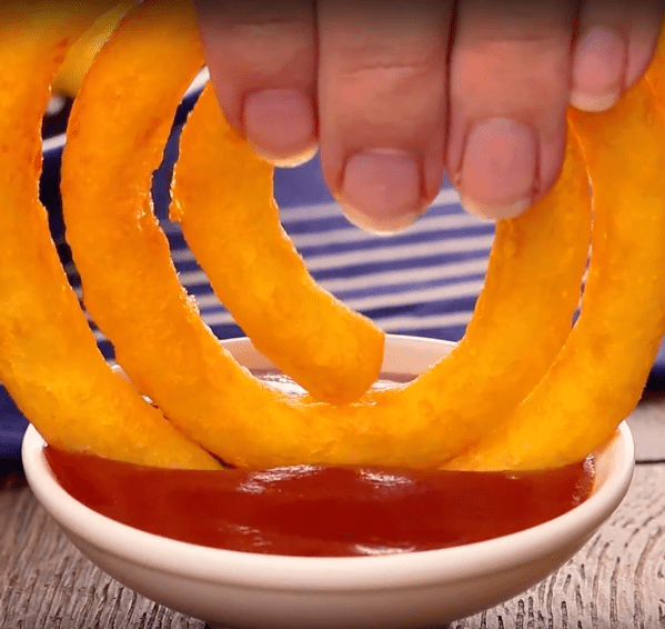 - Dès que votre spirale devient dorée, retirez-la de l'huile avec une louche à égoutter. La mixture de pommes de terre devrait vous permettre de faire entre 4 et 5 spirales géantes.