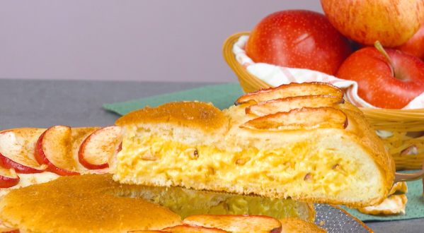 Une tarte aux pommes est toujours une bonne idée ! Rien ne donne une sensation plus agréable que l’odeur qui se dégage lorsqu’une tarte aux pommes est au four. Notre tarte aux pommes est particulièrement belle et la garniture au pudding avec un “croquant” supplémentaire en fait quelque chose de très spécial. On vous montre :
