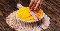 - Terminez en repliant les tranches de bacon sur la dernière couche de fromage et enfournez le tout pendant 2h30 au four.