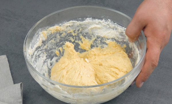 - Mettez la farine, le beurre, les œufs, le sel et le lait dans un saladier. Dans un bol, mélangez la levure avec l'eau et le sucre et ajoutez au reste. Mélangez le tout avec un batteur à pétrins électrique pour obtenir une pâte homogène. Couvrez la pâte et laissez lever à température ambiante pendant une heure et demie.