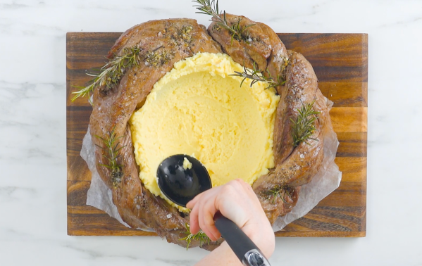 Cette tresse de viande juteuse est un plaisir pour tous les sens. D’une part, elle est tout simplement magnifique, d’autre part, elle convainc sur toute la ligne au niveau du goût. De la viande de bœuf accompagnée de purée de pommes de terre, de sauce aux légumes et de beurre aux herbes fait maison en forme de tresse, voilà la recette idéale pour un dimanche en famille. Bon Ap’ !