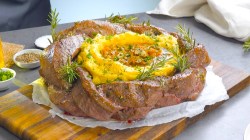Aujourd’hui, nous vous servons de la viande de bœuf juteuse avec de la purée de pommes de terre onctueuse et une sauce aux légumes épicée sous forme de tresse. Cette préparation originale est agrémentée d’un beurre aux herbes fait maison. En d’autres termes, voici un délicieux plat de viande qui transforme le dîner en un chef-d’œuvre absolu.