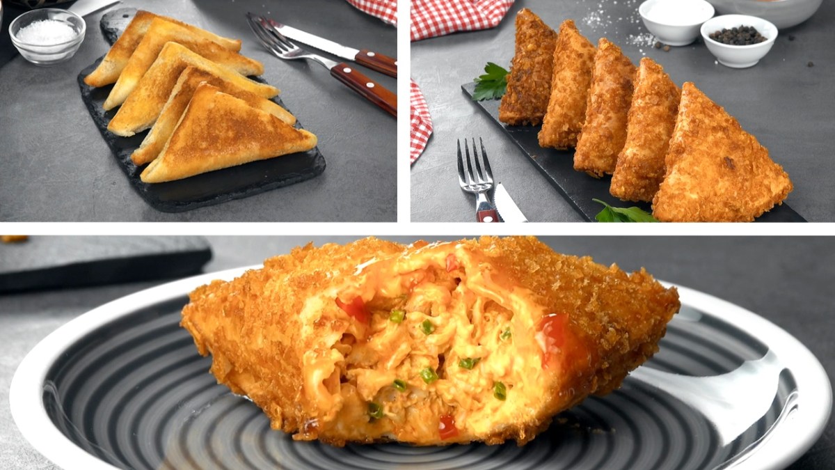 3 triangles frits avec une délicieuse garniture