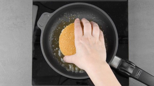 - Coupez en deux les pains à burger. Faites fondre le beurre dans la poêle et déposez une moitié de pain à burger, côté coupé vers le bas. Faites griller le pain jusqu'à ce qu'il soit doré, puis retournez-le.